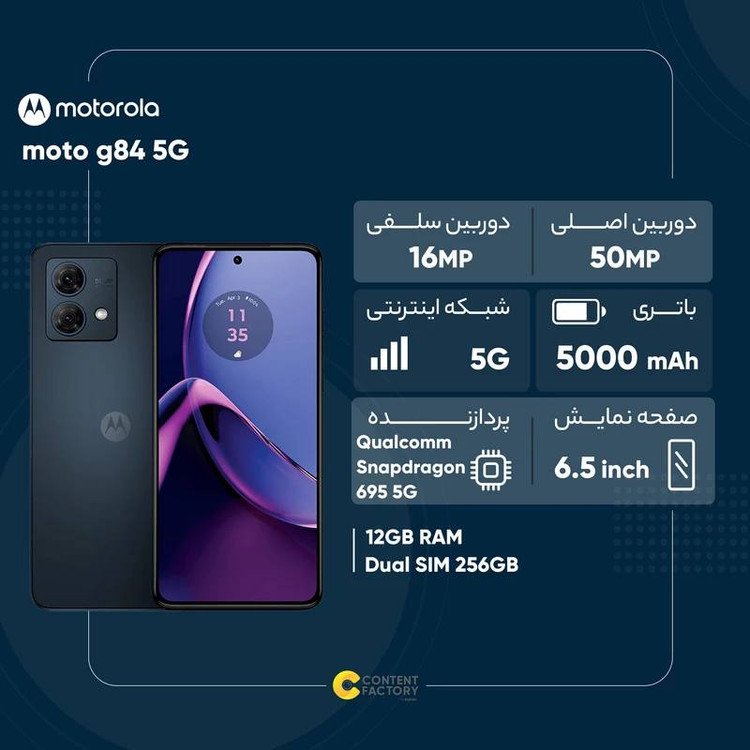 گوشی موبایل موتورولا مدل Moto G84 5G دو سیم کارت ظرفیت 256 گیگابایت و رم 12 گیگابایت