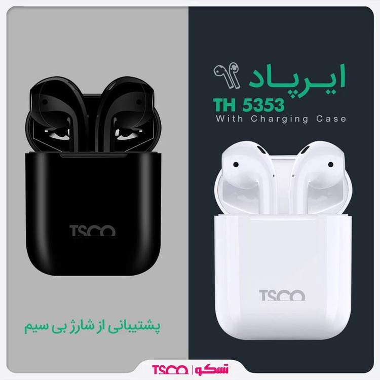 شرح کالا: هندزفری بلوتوثی TH 5353 TWS، از سری محصولات برند تسکو با آخرین نسخه بلوتوث ورژن 5.0 است که باعث شده تا مسافت بیشتری را پشتیبانی کند. در قسمت پشتی هر کدام از گوشهای این هندزفری، یک پنل لمسی گنجانده شده است که میتوانید با لمس آن به تماسهای خود پاسخ دهید یا آنها را ریجکت کنید. از خصوصیات قابل توجه این ایرباد نسبت به موردهای قبلی میتوان به قابلیت شنیدن صدای زنگ هنگام تماس تلفنی با شما از ایربادها اشاره کرد. همچنین از آنجایی که TH 5353 TWS از سیستم لمسی جهت برقراری مکالمات و تنظیم صدا برخوردار است، از این رو نیاز به استفاده از گوشی همراه را به حد زیادی کاهش میدهد. از دیگر ویژگیهای جذاب این هندزفری بی سیم، قابلیت شارژ وایرلس یا همان فناوری Qi است؛ شما با گذاشتن محفظه شارژ ایرباد روی پد وایرلس میتوانید اقدام به شارژ آن کنید.